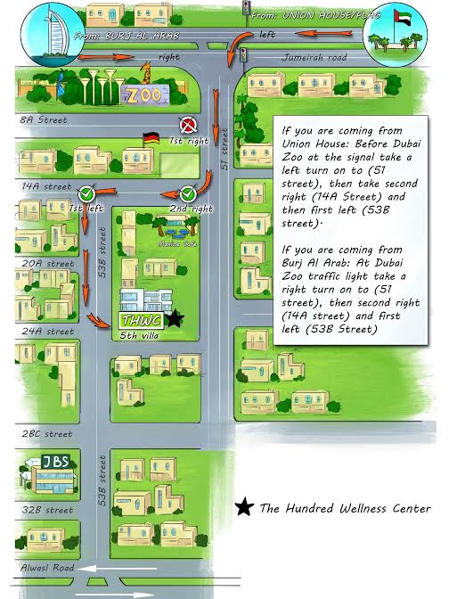 Behind the Zoo, and nestled in the heart of Jumeirah1 is special piece of wellness that we call home. After much hard work, it gives us great pride to finally introduce you all to {The Hundred Wellness Center}. For full contact details, click here.